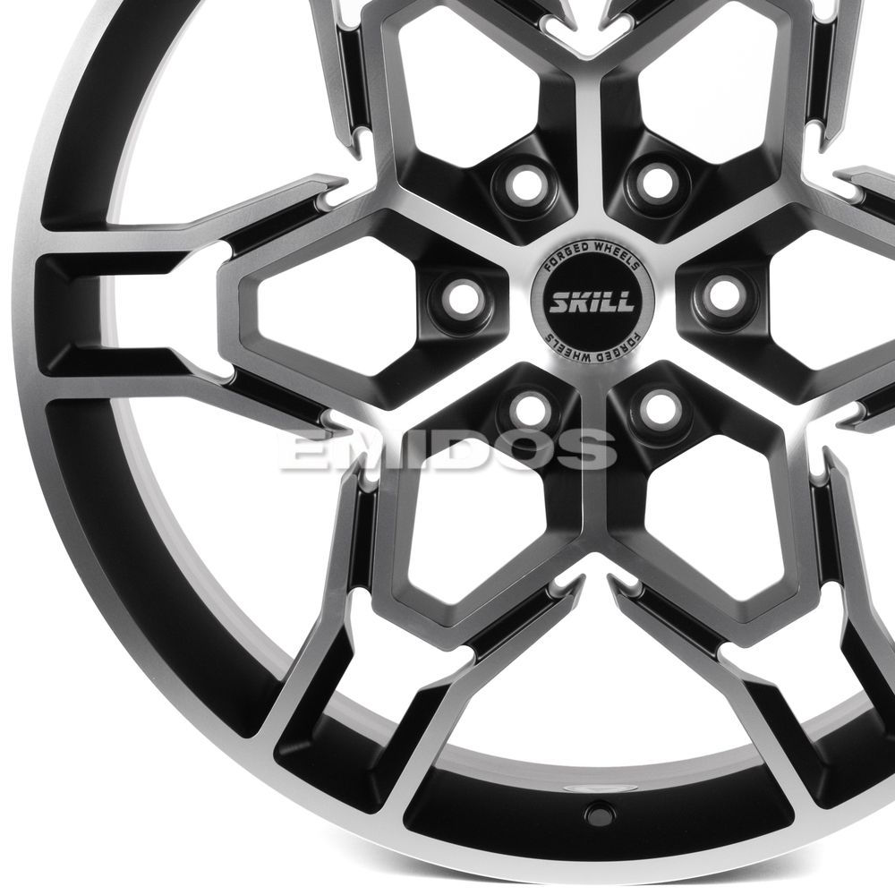 КОВАНЫЕ ДИСКИ H241211J SKILL SV648-SK363 22 J9 ET19 6X139.7 77.8 ЧЁРНЫЙ МАТОВЫЙ + ПОЛИРОВАННЫЕ СПИЦЫ